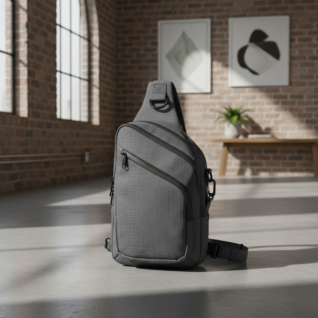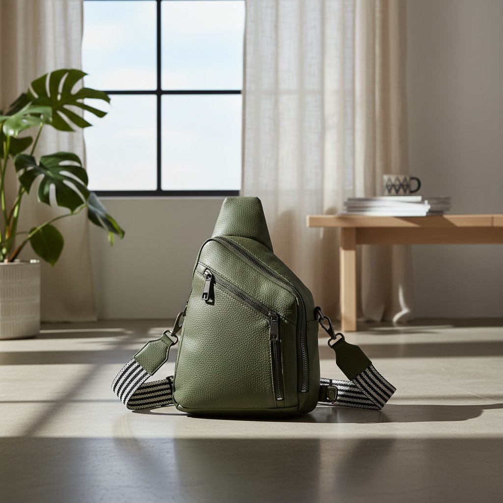 Trendy sling bag with adjustable strap. Compact yet functional, perfect for daily essentials. Hands-free design great for casual outings and travel.